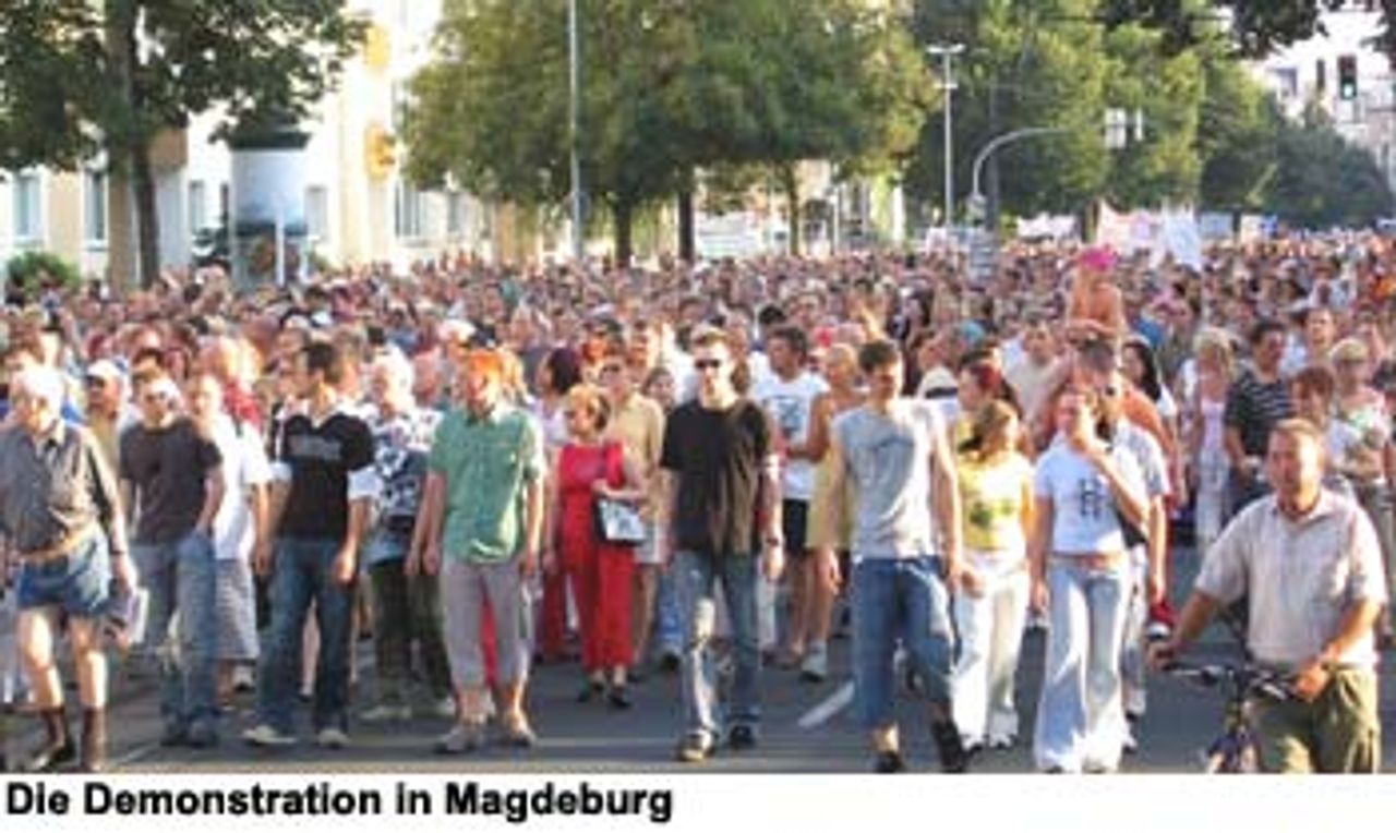Magdeburg - Der Begriff "Sommerpause" gilt normalerweise nicht nur für Schulen, Universitäten und Kulturveranstaltungen, sondern auch für das politische Leben. Die Politiker befinden sich im Urlaub, Partei-, Gewerkschafts- und Verbandsfunktionäre ebenfalls. Die Presse füllt ihre Spalten mit "Sommerloch"-Themen, die kurzfristig aufgebauscht und dann wieder vergessen werden. Debatten, Veranstaltungen und Proteste werden auf den Herbst verschoben. Wenn daher in der Abendhitze eines brütend heißen Augusttages Zehntausende durch die Straßen Magdeburgs, Leipzigs und vieler kleinerer Städte ziehen, die noch nie eine große Demonstration erlebt haben, so ist dies ein untrügliches Zeichen, dass in der Tiefe der Gesellschaft etwas in Bewegung geraten ist.