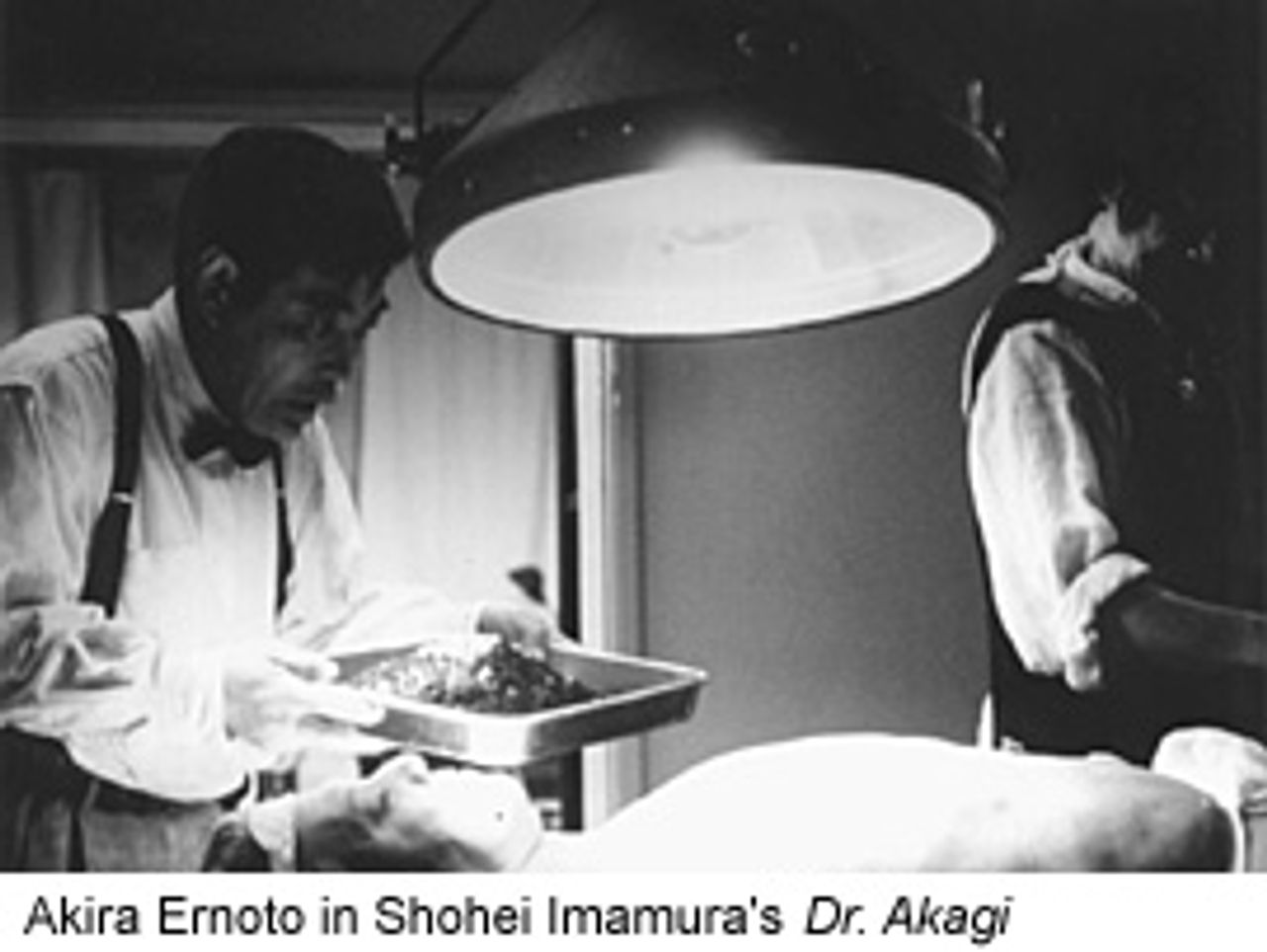 The director has expressed the desire to make 'messy, really human, Japanese, unsettling films.' One might add 'compassionate.' The most unsettling quality of Dr. Akagi is Imamura's willingness to condemn an authoritarian society while refusing to render judgment on the extreme, often self-destructive behavior of that society's victims.