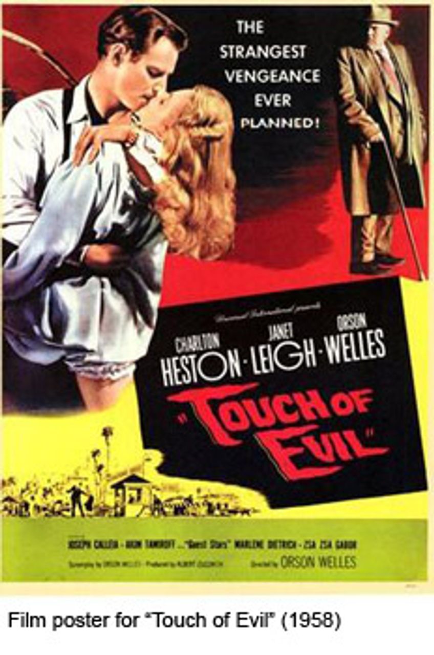 The great exception to all this, which jumps out at the observer, is Welles’s Touch of Evil (1958). According to an interview done in the 1990s, Heston recognized Welles as the greatest artist whom he ever encountered, but considered the film to be nothing more than an exotic “B” picture. He was all too attracted, unfortunately, to the pompous and bombastic.