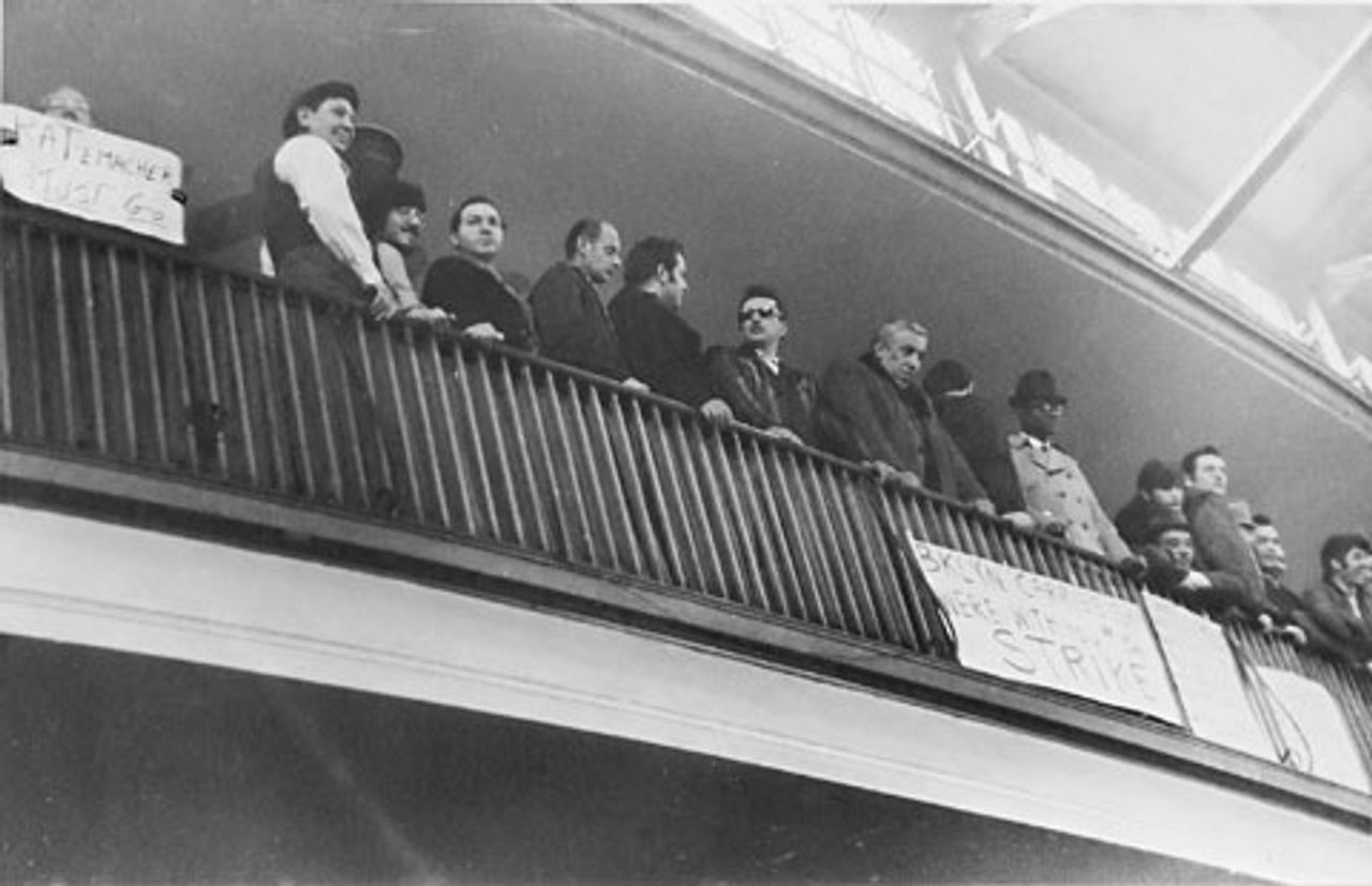 Defiant postal workers at the mass meeting at the armory, where NALC president Rademacher was hung in effigyOther cities, major and minor, quickly followed New York City workers out: Boston, Cleveland, Pittsburg, Denver, San Francisco and Los Angeles. In Chicago, 3,000 carriers shouted down the union leadership’s pleas to remain on the job and in overwhelming numbers voted to go out. Many others called in sick. Back in New York City the strike was 97 percent effective with letter carriers voting on March 21 to remain out and the clerks local voting to join the strike.