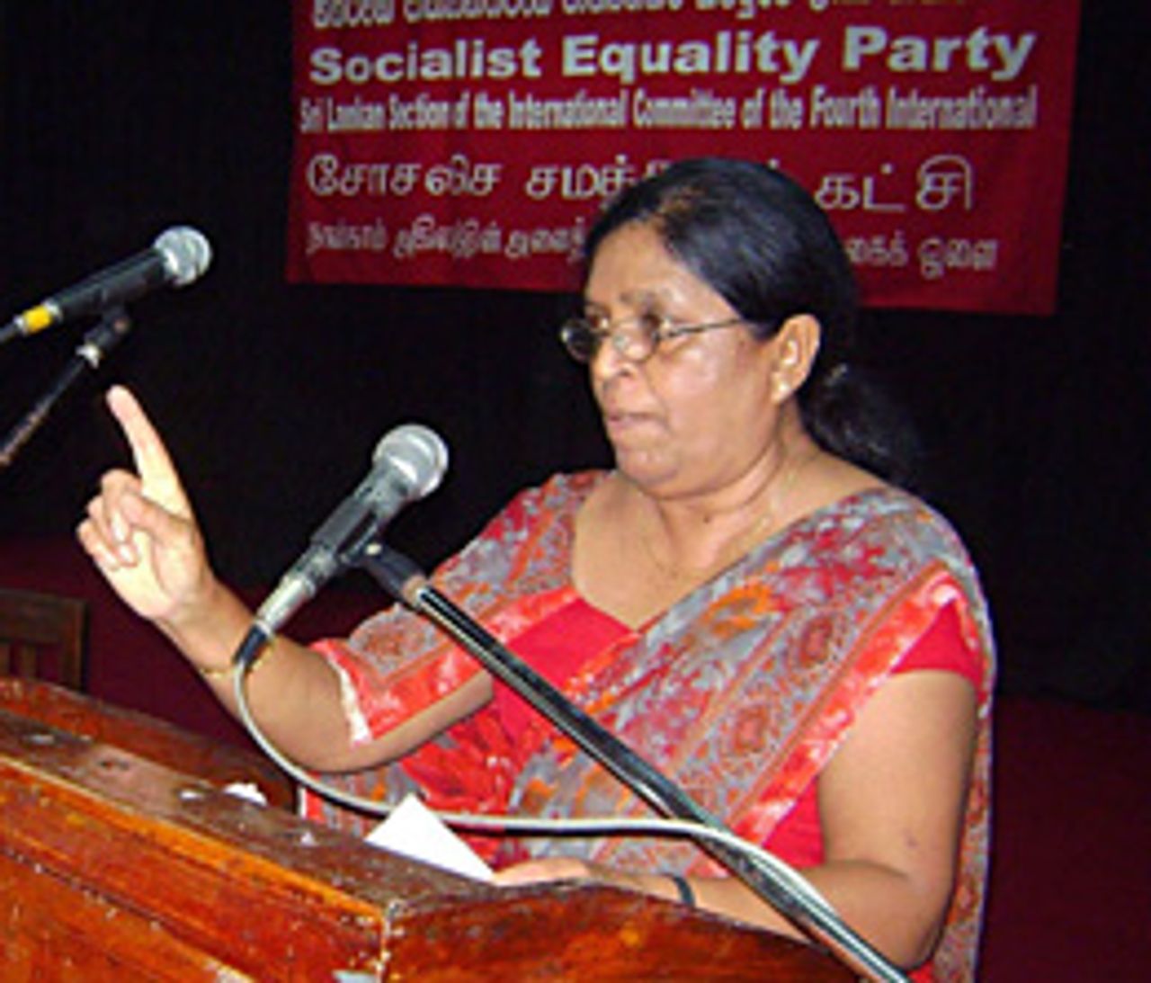 Vilani PeirisOpening the meeting, SEP political committee member Vilani Peiris, who heads the party slate for the Colombo district, said: “This election is being held under conditions where the United Peoples Freedom Alliance government is violating democratic rights and intensifying its intimidation of political opponents.”