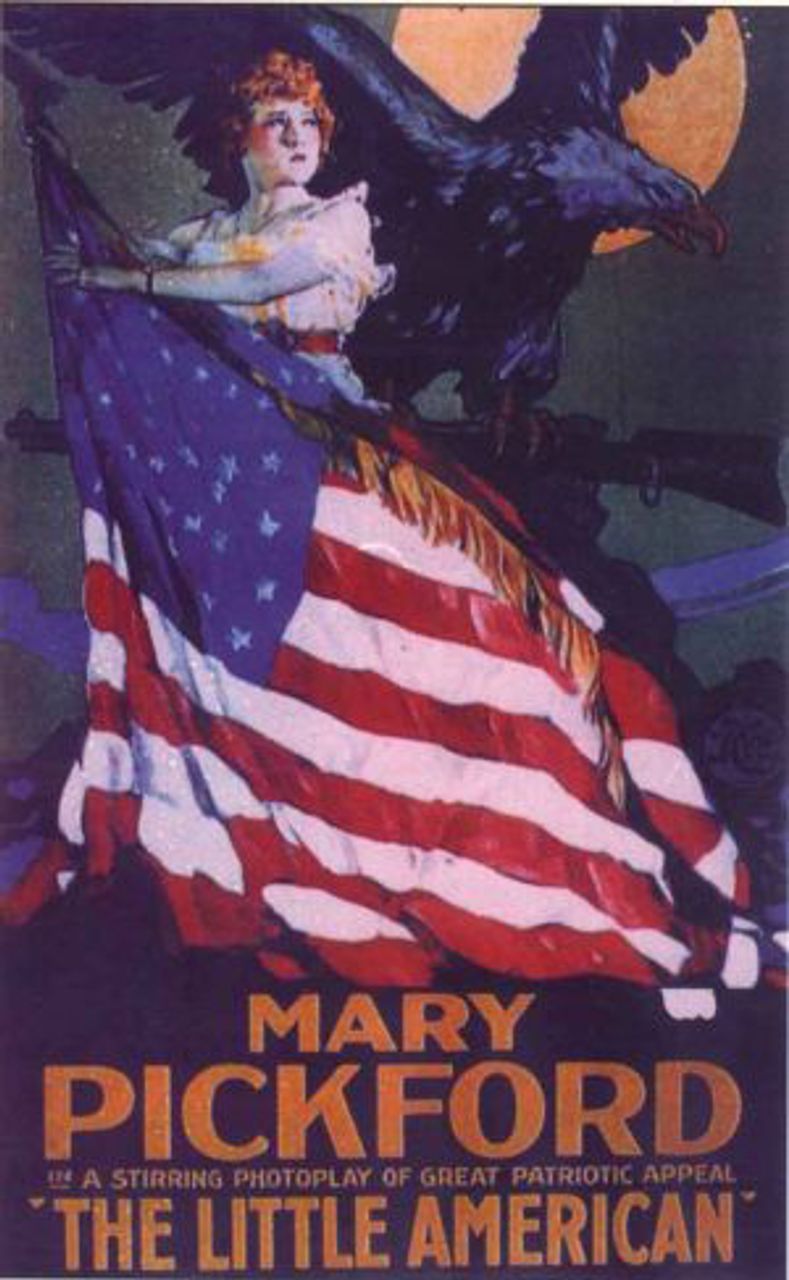 Personal appearances by stars were essential in promoting the war. In December 1917, the Canadian-born Pickford took a break in San Francisco location filming of Amarillo of Clothesline Alley to lead a Marine Corps band down Market Street, “clad in a skirted variation of a marine corps uniform.” In July 1918, the Motion Picture War Relief Association staged a parade in Los Angeles with Fairbanks as grand marshal leading 200 mounted aides. Universal director Lois Weber (Griffith’s commercial equal at the time) marshaled the women’s division of this parade that included thousands of marching men and 47 bands. Film stars Pickford, Chaplin and Fairbanks jointly addressed huge crowds in Manhattan to sell Liberty war bonds and subsequently toured the country individually. For “Liberty Day” in New York City on October 12, 1918, Zukor arranged for a traveling theater to appear on major street corners with stars from his Manhattan and Fort Lee, New Jersey film studios promoting war bonds with “a host of pretty bond sellers.” [10]
