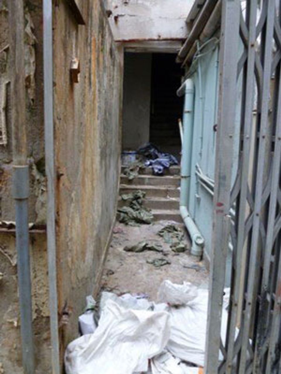 Entrance to run down housing block in Kowloon