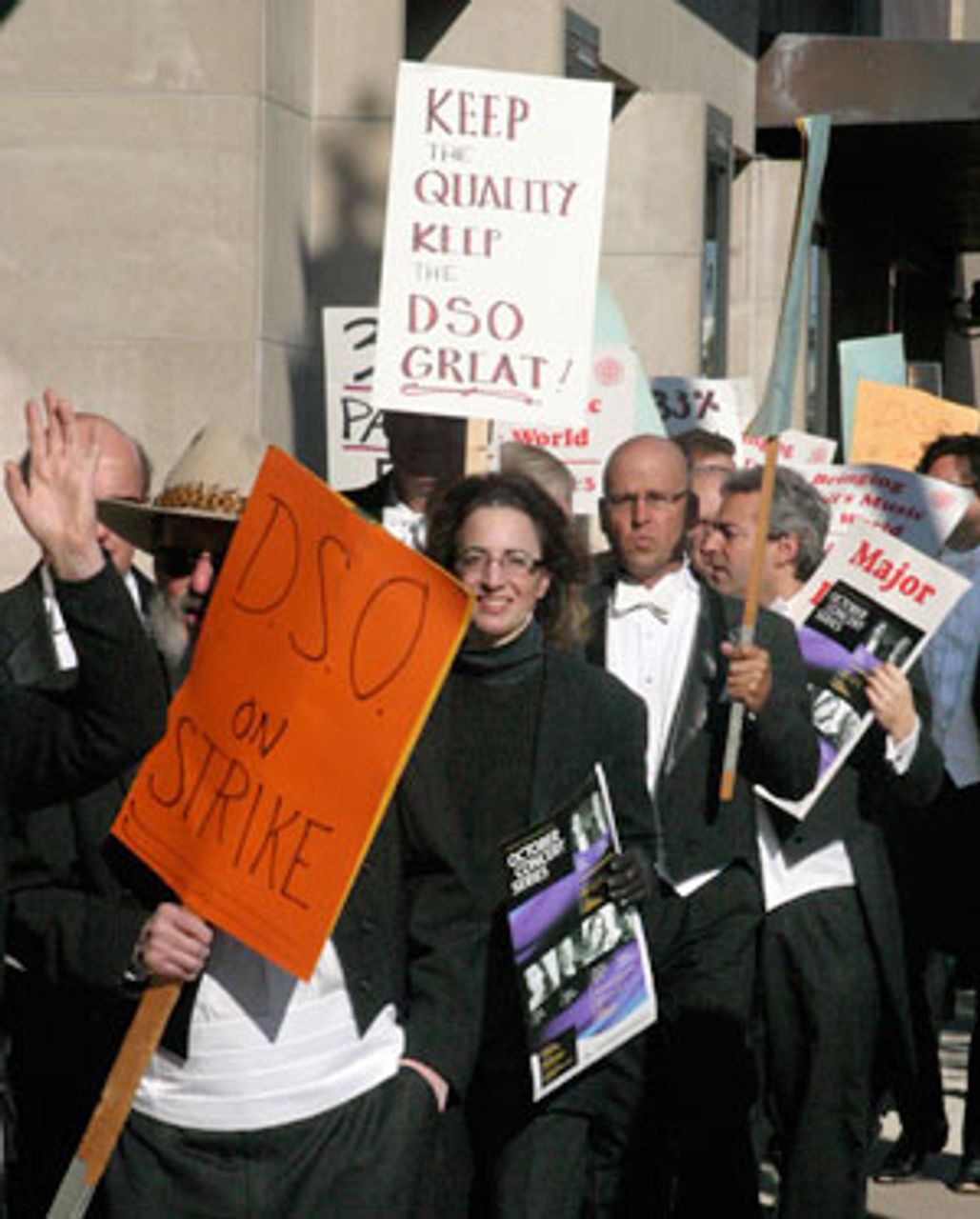 DSO musicians picketing at Orchestra Hall on the first day of the strike