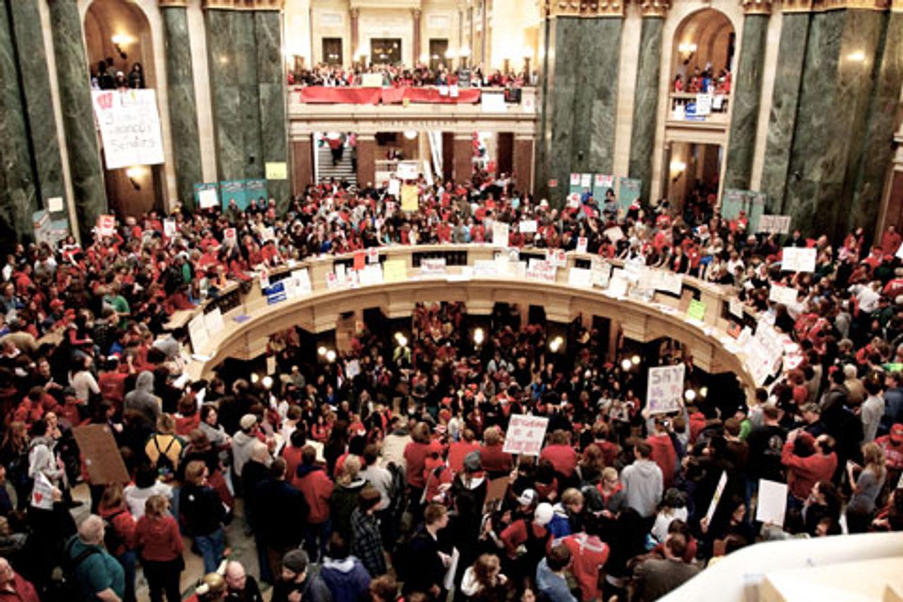With popular sentiment for a general strike erupting after the Republicans unilaterally imposed the anti-worker bill on March 9, the unions, working with the Democrats, moved quickly to quash the protests and channel anger through the toothless recall campaign.
