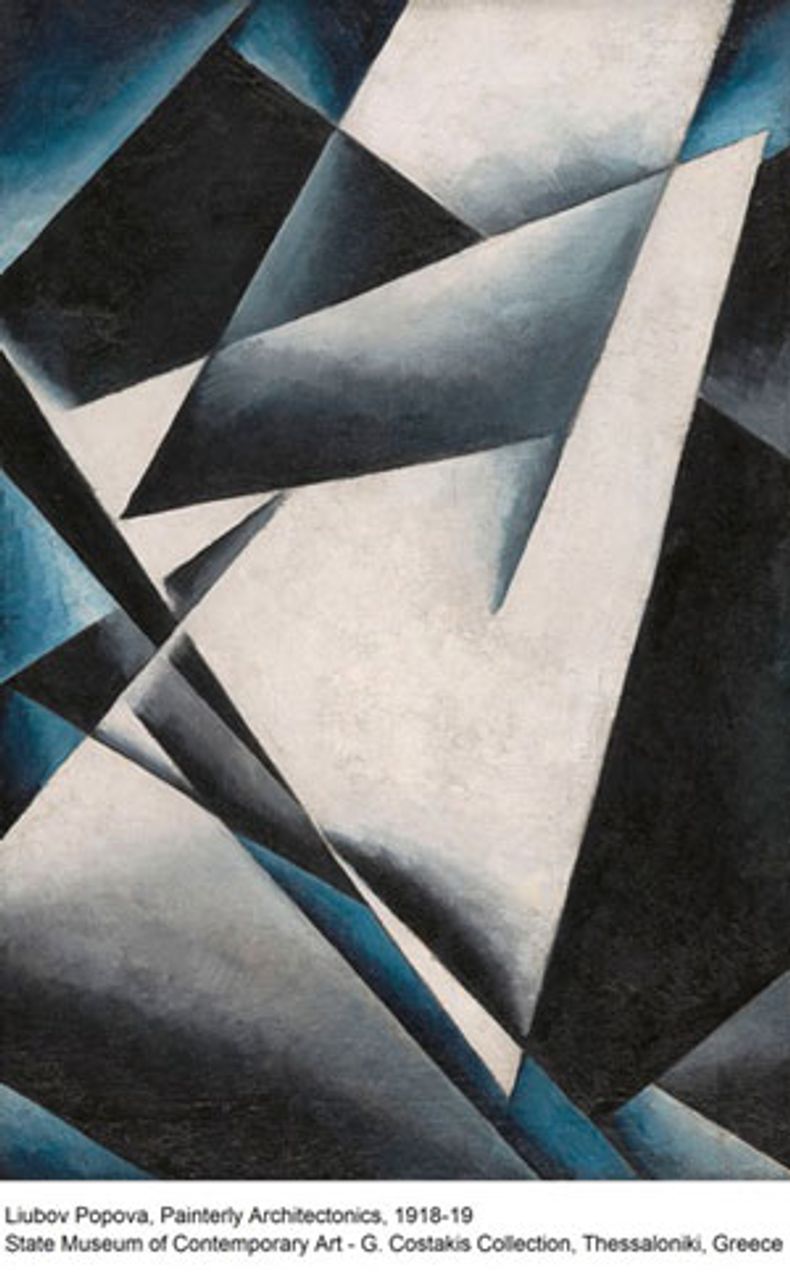 Costakis explained, “It was very difficult at that time to find paintings by Popova. Somebody introduced me to Pavel Popov, her brother. Pavel suggested me to go to his adopted son’s house. So I went. The first thing I noticed going up the stairs to the second floor, was a Popova painting on plywood being used to support the trough where they did their laundry. They showed me many of Popova’s gouaches and drawings. Suddenly, I noticed that the windows were covered by paintings by Popova on plywood. I asked them if it was possible to buy these paintings too, but they said ‘no, these ones no, it will rain and everything will get wet. Bring us another piece of plywood and then we’ll give them to you.’ ”