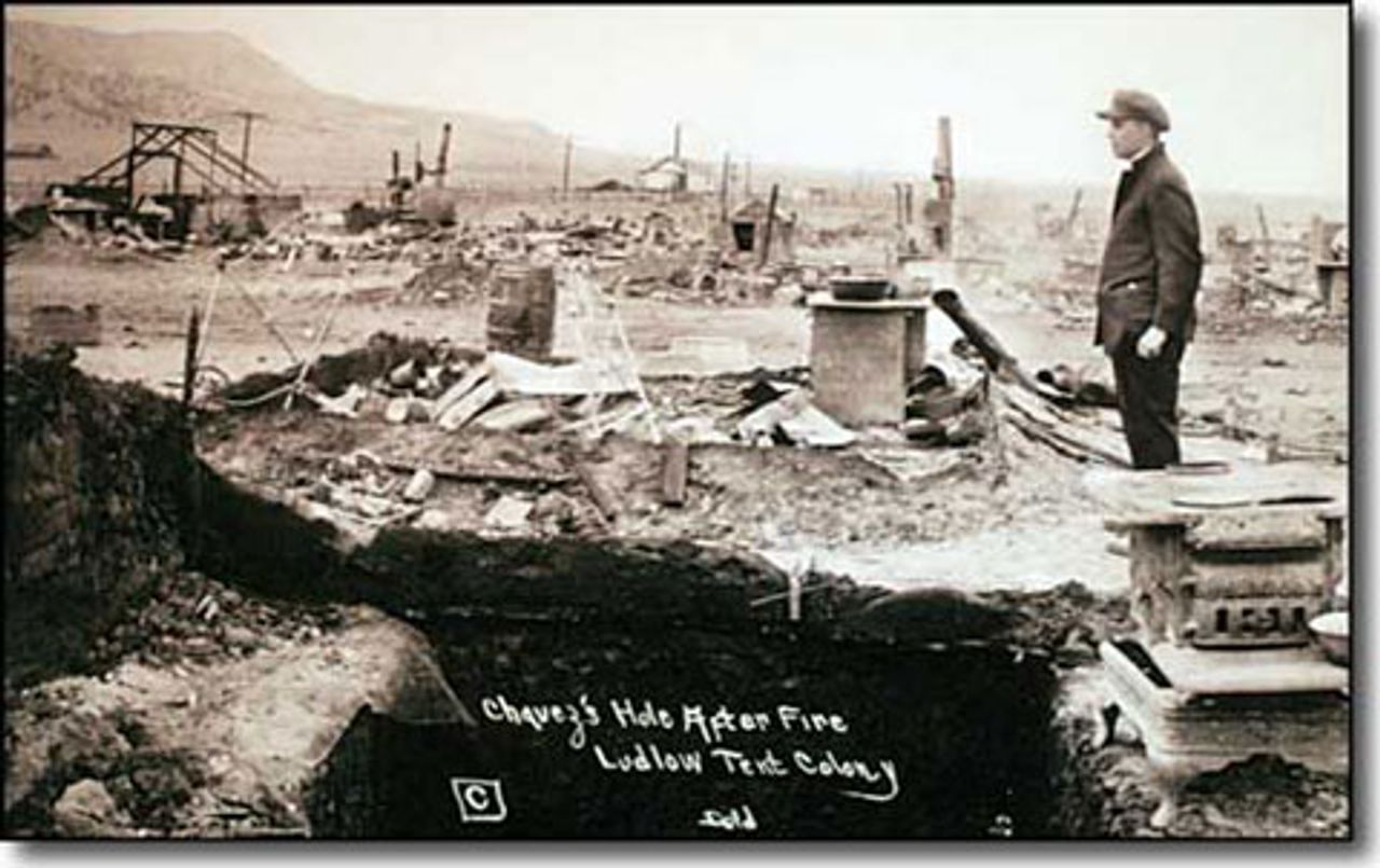 Months earlier, strikers had dug a seven-foot deep hole underneath a tent so that children and pregnant women would have a place to hide when agents and guardsmen carried out their random shootings. Under fire again, many women and children ran to hide in the shelter.