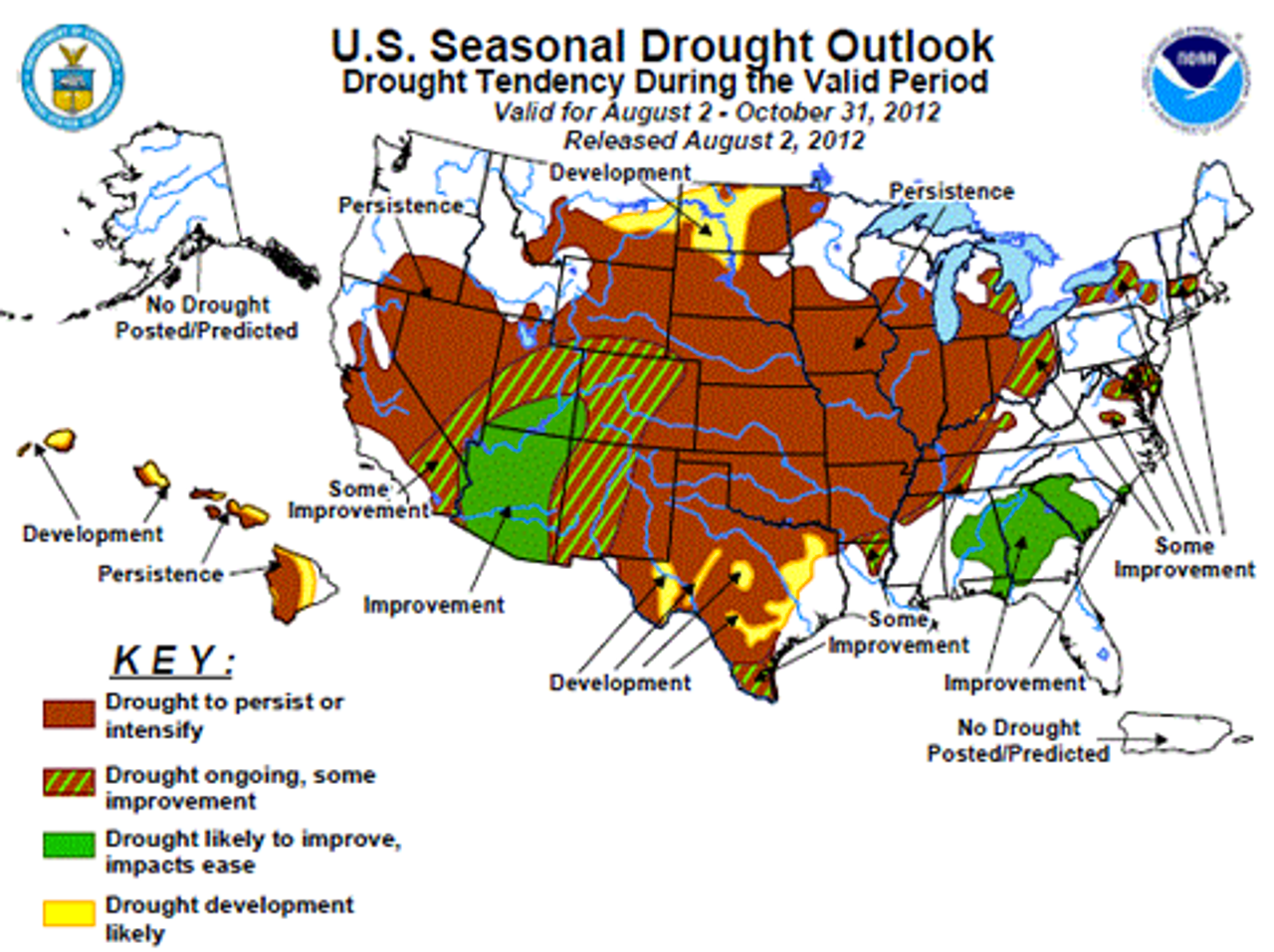 The US is the world’s leading producer of corn, soybeans, and wheat, accounting for one in every three bushels traded globally. The National Weather Service forecasts that drought conditions—the most severe in more than half a century—will persist through the end of October, posing the threat of soil damage and water depletion that will carry over into the next growing season.