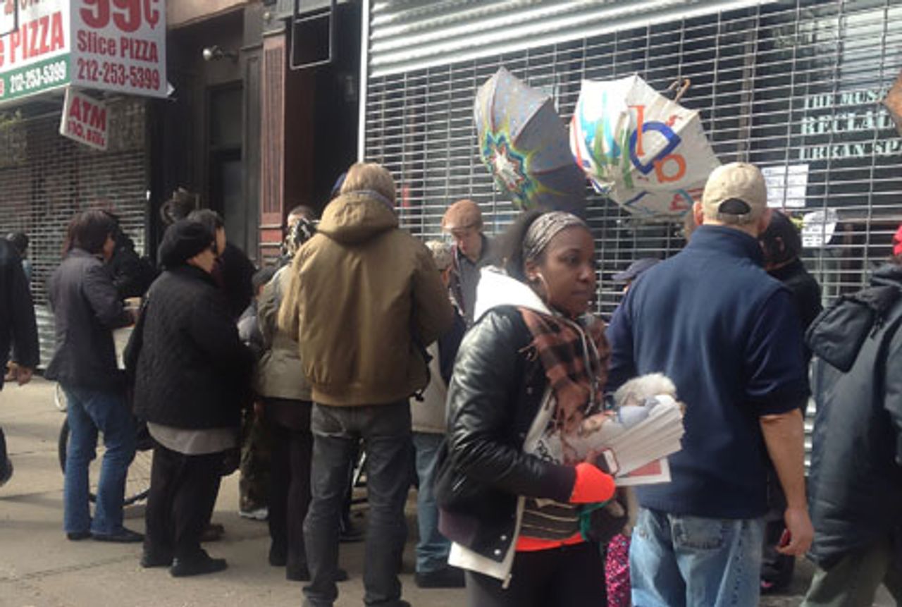 People waiting for food being distributedThe partial resumption of service on 14 or the city’s 23 subway lines did little to alleviate the transportation nightmare facing those trying to commute to work or leave their powerless neighborhoods.
