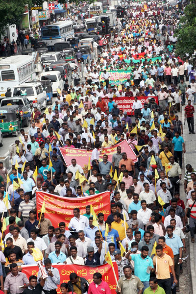 දක්ෂිනාංශික එජාප, ජවිපෙ හා ජෙනරාල් සරත් ෆොන්සේකාගේ ප්රප උත්සාහ කරන්නේ ජීවනතත්වයන්ට එල්ල කරන ප්රහාරයන්ට එරෙහිව රාජපක්ෂ ආන්ඩුවට විරුද්ධව වර්ධනය වන කම්කරු පන්තියේ අතෘප්තිය තම ප්රතිගාමී දේශපාලන අවශ්යතාවයන් සඳහා ගසා කැමට ය. සමිති නිලධරයත්, ව්යාජ වාම පක්ෂ වන නසසප හා එසප යෙදීගෙන සිටින්නේ කම්කරු පන්තියේ එම විරුද්ධත්වය බොරු විරෝධතාවලට කොටුකර එජාපය අත යටට තල්ලූ කිරීමේ දැනුවත් ව්යායාමයක ය.