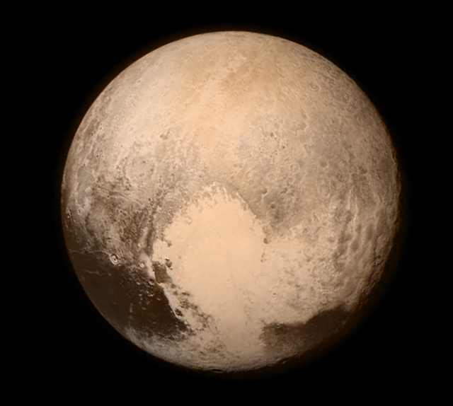 ප්ලූටෝගේ භූවිද්යාත්මක ඉතිහාසය පිලිබඳ සමහර හෝඩුවාවල් ද සොයාගනු ලැබ ඇත. ආවාටවලින් ගහන ග්රහලොවේ අනෙක් ප්රදේශවලින් වෙනස් ව, සාපේක්ෂ ව මෘදු ප්රදේශයක් යයි පෙනෙන ප්ලූටෝගේ පෘෂ්ඨයේ හදවතේ හැඩයක ලක්ෂනය සහිත වඩාත් ම විභේදිත ඡායාරූපය ලැබුනේ ජූලි 13දා පෘථිවියට එවන ලද අවසන් පින්තූරයෙනි. එහි අර්ථය, ප්ලූටෝ වරක භූවිද්යාත්මක ව ක්රියාකාරී ව තිබී ඇති බව හා තවමත් එලෙසම පවතින බව ය. හදවතෙන් වම්පසට වන්නට පිහිටි රේඛීය පැලීම් මාලාවක් ඇතුලු ප්ලූටෝගේ පෘෂ්ඨය මත පිහිටි අනෙකුත් ලක්ෂන ද මෙම මතය තහවුරු කරනු ලබයි. මෙම සංකීර්නත්වයන්ගෙන් එකක්වත් ප්ලූටෝ වෙත ලඟා වීමට පෙර අපේක්ෂා නො කරන ලද අතර ඒවායේ ඇඟවුම් පිලිබඳ ව දැනටමත් අධ්යයනය කෙරෙමින් ඇත.