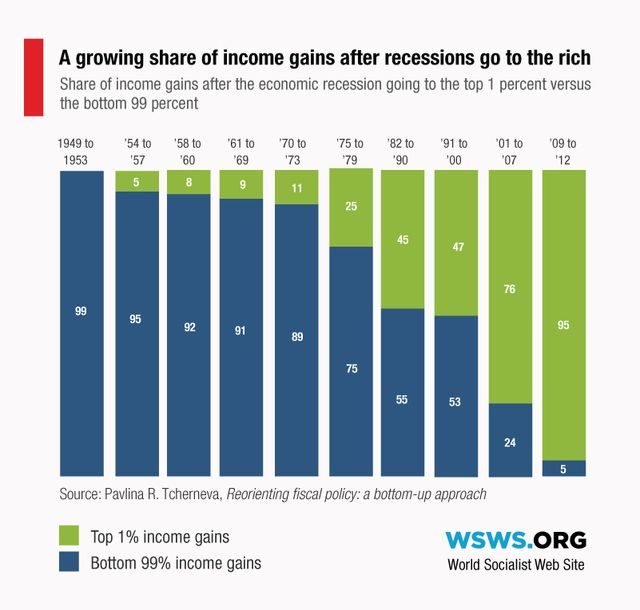 එහි ප්රතිපලය වී ඇත්තේ දුප්පත්කම හා සමාජ අසමානතාවය තියුනු ලෙස ඉහල යාමයි. යන්තම් පසුගිය සති දෙක තුල පමනක් පලවූ අධ්යයනයන් පවා පෙන්නුම් කර ඇත්තේ, ඇමරිකානු කම්කරුවන්ගෙන් අඩක් වසරකට ඩොලර් 30000ට අඩු හා සියයට 40ක් 20000ට අඩු වැටුප් ලබන බවත්, ආර්ථික ව්යසනයේ ප්රතිපල වශයෙන් සුදු ජාතික, පරිනත වියේ පසුවන කම්කරුවන් අතර මරන අනුපාතිකය තියුනු ලෙස ඉහල නැඟී ඇති බවත්ය. “මධ්යම පන්තියේ” යහපත වෙනුවෙන් බව කියන ඔබාමාගේ යොමුව, ආර්ථික ප්රතිලාභ වලින් සියයට 95ක්ම ජනගහනයේ සියයට 1ක් වෙත ගලා යන ආර්ථිකයක් නිර්මානය කර තිබේ.
