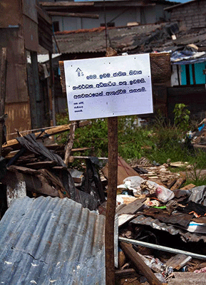 නාගරික සංවර්ධන අධිකාරයේ දැන්වීමක්“මේ ප්රශ්නෙ බි්රගේඩියර්ගේ (නාසඅ ප්රධානි) පුද්ගලික එකක් නෙමෙයි. මේක දේශපාලන වැඩක්. එක අපිට තේරෙනවා. කඩන දවසේ යූඞීඒ එක ඇවිල්ල කිව්වා මේ ඉඩම විකුනලා තියෙන්නේ කියල. ඒ නිසා අපිට යන්නම වෙනවා කිව්වා. නමුත් යූඞීඒ එක තවම බෝඞ් ගහනවා මේක ඒගොල්ලන් සතු ඉඩමක් කියල. අපිට අයිතියක් තියෙනවා මේක කවුරු සතු ඉඩමක්ද කියල දැන ගන්න.
