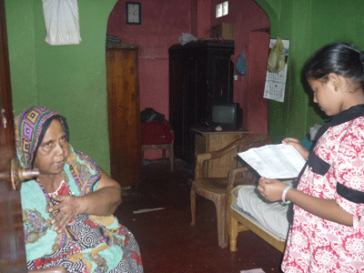 නිවසේ සියලු දෙනාගේ අවශ්යතා වලට ජල බිල්පත් සඳහා මසකට රු 5000කට අධික මුදලක් අවශ්ය යමහලු වැන්දඹුවක වන මෙම කාන්තාව මුනුපුරන් සය දෙනෙකු බලා ගන්නේ තම කුඩා නිවස තුල ය. මාසිකව ලැබෙන රු 600 ක සමෘද්ධි සහනාධාරයෙන් ජීවත් වීමට නොහැකි නිසා නිවසේ කාමර දෙකක් කුලියට දී ඇති අතර, මේ සියලු දෙනාගේ අවශ්යතා වලට ජල බිල්පත් සඳහා මසකට රු 5000කට අධික මුදලක් අවශ්ය බව ඇය පැවසුවේ, පසුගිය මාසයේ ජල බිල්පත ද පෙන්වමිනි. ”මේ ජරා පරිසරය හින්ද, මේ පැත්තේ මිනිස්සු හුඟක් ලෙඩ වෙනවා. මගේ ලොකු පුතාගේ වකුගඩුවක් නරක් වුනා විෂබීජයක් ගිහින්, මේ වත්තේ හුඟක් අයට වකුගඩු රෝග තියෙනවා.” රෝගීව සිටින ඇයගේ වැඩිමහලු පුත් සිවුදරු පියෙකි.