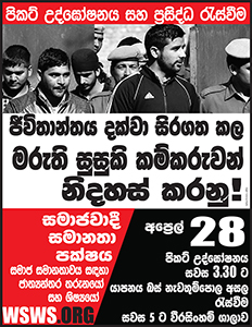ජීවිතාන්තය දක්වා සිරගත කල ඉන්දියාවේ මරුති සුසුකි කම්කරුවන් නිදහස්කර ගැනීමට යාපනයේ පවත්වන උද්ඝෝෂනයට එක්වෙන්න!