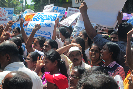 දහස් ගනනක් දුගීහු සමෘද්ධි සහනාධාරය කප්පාදුවට එරෙහිව විරෝධය පාති