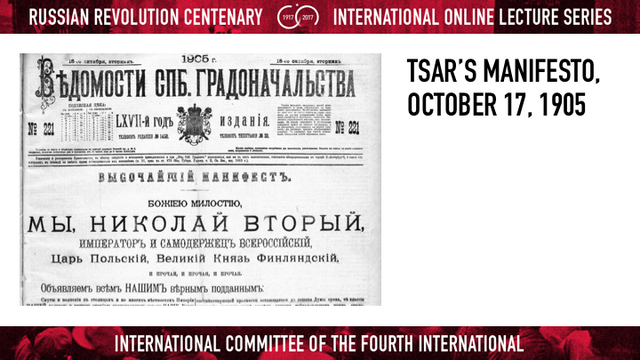 ලෙනින් 1905 විස්තර කලේ 1917 සඳහා පූර්ව රංගනය ලෙසටය. ට්රොට්ස්කි එය නම් කලේ, අනෙක් දේ අතර, “මහාර්ඝ පූර්වරංගයක්” ලෙස ය. දින කිහිපයකට පෙර ලෝක සමාජවාදී වෙබ් අඩවිය විසින් යලි පල කරන ලද ලිපියක් තුල ට්රොට්ස්කි එම සිතුවිල්ල යලි සිහිපත් කරමින් පවසා ඇත්තේ, කම්කරුවන් 1905 හදාරා පාඩම් ඉගෙන ගත යුතු බවයි. 1905 දී රුසියානු අධිරාජ්යය පාලනය කලේ සාර් කෙනෙකු වූ 2 වන නිකොලස් සාර් විසිනි. ඔහු පරම ආඥාදායකයෙකි. වංශාධිපති හා නිලධරයේ ස්ථරයන් මත පදනම් වෙමින් ඔහු දැවැන්ත රාජ්ය යාන්ත්රනය පවත්වාගෙන ගියේය. ඔහු රට පාලනය කලේ ආඥා මගිනි. රටේ ජාතික ධනයෙන් ඉමහත් කොටසක් කා දැමූ යෝධ මිලිටරිය පාලනය කලේ ද සාර් විසිනි.