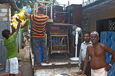 අවදානම් සහිත යයි සලකුනු කර ඇති නිවසකින් වෙනත් ස්ථානයක පදිංචියට යාමට සැරසෙන ඩබ්ලිව්. ආර්. අබේවික්රමමෙසේ අවදානම් සහිත යයි සලකුනු කර ඇති නිවසකින් තම බඩුබාහිරාදිය ඉවත් කරගනිමින් තම පවුල සමඟ වෙනත් ස්ථානයක පදිංචියට යාමට සැරසෙන ඩබ්ලිව්. ආර්. අබේවික්රම: “අපි මේ ගෙදර ඉන්නේ කුලියට, මේක අවදානම් කියල ලකුනු කරපු නිසා අපිට යන්න වුනා. ඔය තාවකාලික තැන් වලට ගිහින් ඉන්නේ ගෙවල් අයිතිකාරයෝ. කුලියට හිටිය අපි වගේ අයට කෙලින්ම කුලියට තැනක් හොයාගෙන යන්න කිව්වා.”
