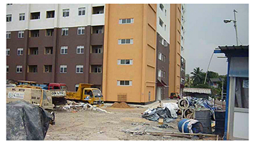 විදුලි සෝපානය අසල බිත්ති පුපුරාගොස් ඇති අයුරුප්රමිතියෙන් තොර සහ ඉතා අඩු ඉඩකඩකින් යුත් මෙම නිවාස පදිංචියට නුසුදුසුය. මෙම නිවාස ගොඩනගා වසරක් ගතව ඇති අතර බිත්ති පුපුරා ඇති අයුරු නිවැසියෝ ලෝක සමාජවාදී වෙබ් අඩවි (ලෝසවෙඅ) වාර්තා කරුවන්ට පෙන්වූහ.