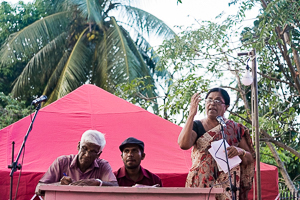 දකුනු ආසියාවේද ජාත්යන්තරවද සමාජවාදී සමූහාන්ඩු සංගමයක කොටසක් ලෙස ශ්රී ලංකා හා ඊලම් සමාජවාදී සමූහාන්ඩුවක් කම්කරුන්ගේ හා ගොවියන්ගේ ආන්ඩුවක ස්වරූපයෙන් ගොඩ නැගීමෙන් පමනක් කම්කරුවන් හා පීඩිතය මුහුනදී ඇති ප්රශ්න විසඳිය හැකි බව ඇය අවධාරනය කලාය. මෙම වැඩපිලිවල යටතේ කම්කරුවන් ක්රියාකාරී කමිටු ගොඩනගා ගැනීම සඳහා ඉදිරියට පැමිනිය යුතු බව ඇය කියා සිටියා ය.