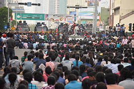 විශාල ප්රමානයෙන් පොලිසිය රඳවා තිබුනිආන්ඩුව සිසුන් බිය ගැන්වීම සඳහා විජේරාම මංසන්ධියේ සහ ජයවර්ධනපුර විශ්ව විද්යාලය අසල විශාල ප්රමානයෙන් පොලිසිය රඳවා තිබුනි. ආන්ඩුවේ වාරන නියෝග නොතකා පෙරට ගිය පා ගමන කොල්ලුපිටිය මංසන්ධියේ දී මාර්ග බාධක යොදා අවහිර කල පොලීසිය විරෝධතාකරුවන් වෙත ජල හා කඳුලු ගෑස් ප්රහාර එල්ල කරමින් ඔවුන් විසුරුවා හලේය.