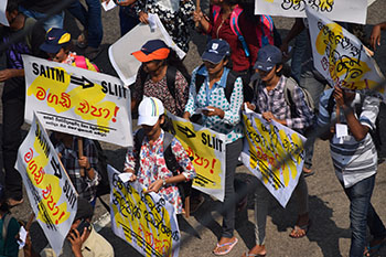 උද්ඝෝනයට කොලඹට රැස්වූවන්ගෙන් කොටසක්ශ්රී ජයවර්ධනපුර විශ්ව විද්යාලයේ සිට කොල්ලුපිටිය මංසන්ධිය දක්වා වූ පා ගමනේදී, සයිටම් පුද්ගලික වෛද්ය විද්යාලය ස්ලිට් ආයතනය යටතේ වෙනත් නමකින් ආරම්භ කිරීමට, රාජ්ය මර්දනයට, පාසල් පෙල පොත් සහ නිල ඇඳුම් කප්පාදුවට, “සුරක්ෂා සිසු රක්ෂනයට” හා ”අධ්යාපනය විකිනීමට” එරෙහිව ඔවුහු සටන් පාඨ හඬ නැගූහ.