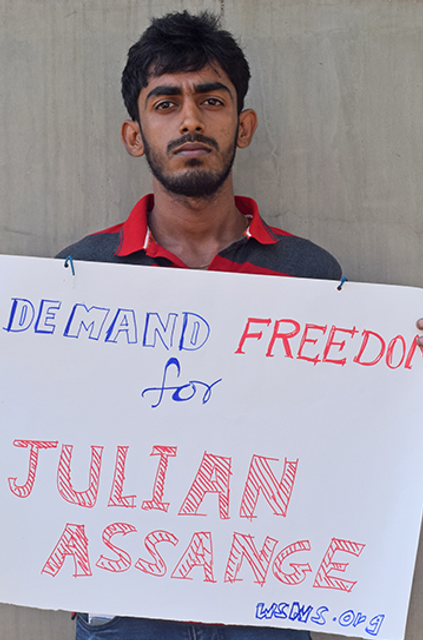 තෙවන වසර විද්යා සිසුවකු වන හෙෂාන් මෙසේ පවසයි: “මම යුද්ධයට විරුද්ධව ලෝක සාමය වෙනුවෙන් පෙනී සිටිනවා. යුද්ධය අපගේ ජීවත් වීමේ අයිතිය විනාශ කරනවා. තවත් ලෝක යුද්ධයක් දිශාවට තල්ලුවෙන ඇමරිකානු අධිරාජ්යවාදයට මෙම සත්යය එලිකිරීම වැලැක්වීමට අවශ්යයි. කිසිම රටකට අපේ කථා කිරීමේ අයිතිය උදුරා ගන්නට ඉඩ දිය නොහැකියි. අසාන්ජ් නිදහස් කිරීම වෙනුවෙන් ගෙනයන මේ උද්ඝෝෂනයත් ධනවාදය හා එහි විනාශකාරී න්යායපත්රය අවසන් කරන සමාජවාදී ව්යාපාරයක් ගොඩනැඟීමත් මම අගය කරනවා.”