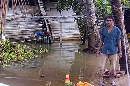 ගංවතුර ගැලුවහොත් ඊට කිලෝමීටර දෙකකට පමන ඈතින් ඇති ඕල්කට් විද්යාලයට යන ලෙස ග්රාම නිලධාරිවරයා තමන්ට දැනුම් දුන් බව චමින්ද පැවසුවේය. “එතන කිසිම පහසුකමක් නැහැ. ඊට වඩා හොඳයි මෙහෙම ඉන්න එක. වතුරට යටවෙච්ච නැති ගෙවල් වලත් වැසිකිලි උතුරලා දැන් හැමෝම යන්නේ පන්සලේ තියන වැසිකිලියට. මොනවටද ආන්ඩු තියෙන්නේ කියලා හිතෙනවා.”