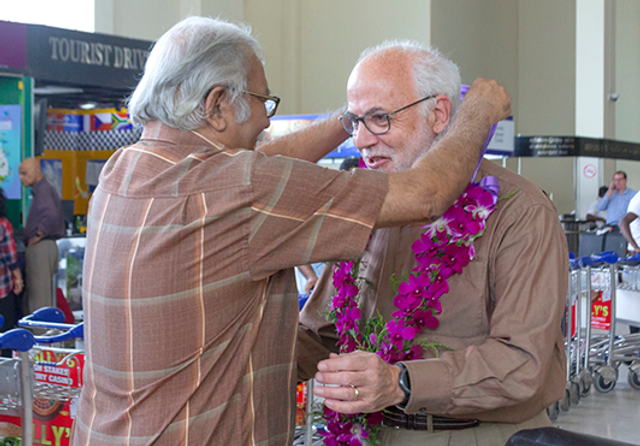 ශ්රී ලංකාවට පැමිනි ඩේවිඩ් නෝර්ත් උනුසුම් ලෙස පිලි ගනී