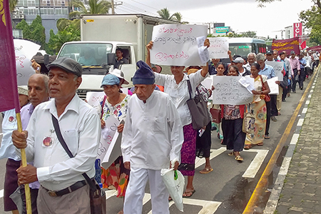 පා ගමනකින් පාර්ලිමේන්තු වට රවුම වෙත පැමිනි විශ්රාමිකයෝ පා ගමනකින් පාර්ලිමේන්තු වට රවුම වෙත පැමිනි විශ්රාමිකයෝ ඉහත ඉල්ලීම් සහිත සටන් පුවරු ප්රදර්ශනය කරමින් පැය තුනකට අධික කාලයක් උද්ඝෝෂනයේ නිරත වූහ. පා ගමන හා විරෝධතාවය සංවිධානය කර තිබුනේ සමස්ත ලංකා රජයේ විශ්රාමිකයින්ගේ ඒකාබද්ධ සංවිධානය (සලංරවිඒස) මගිනි.