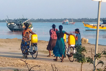 “අපේ මිනිස්සු කයිට්ස්වලට බෝට්ටුවෙන් ගිහිල්ල පිරිසිදු කරපු වතුර අරන් එනව. ඒත් ඒක හැම වෙලාවෙ ම නැහැ. බලා ඉන්න සිද්ද වෙනවා. අපිට හම්බ වෙන්නේ ලීටර් 10ක් විතර” යි එන්. වෛද්යලිංගම් කීවේ ය.