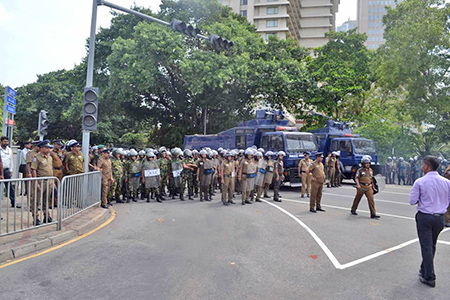 නමුත් පොලීසිය මාර්ග බාධක යොදා කොටුවෙන් ලෝටස් පාරට පිවිසීම අවහිර කර තිබුනි. විරෝධතාකරුවෝ මාර්ග බාධක නොතකා ඉදිරියට ගමන් කිරීමට උත්සාහ දැරීමේ දී පොලීසිය ඔවුන්ට අධි පීඩන ජල ප්රහාර සහ කඳුලු ගෑස් ප්රහාර එල්ල කලේ ය.