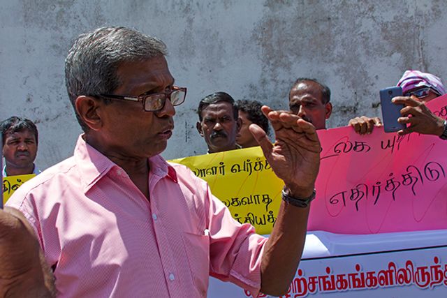 අවන්හල් කම්කරුවකු වන බාලසිංහම්: “රුපියල් 1,000ක දෛනික වැටුපකින් මම මගේ පවුල නඩත්තු කරගෙන යාමට වලිකනවා. ඒත් වතු කම්කරුවන්ට එච්චරක් වත් ලැබෙන්නෙ නැහැ. හැම තැන ම කම්කරුවන් මුහුන දෙන්නෙ එකම ප්රශ්නවලට. මම වතු කම්කරුවන්ගේ අරගලයට සහයෝගය දෙනවා, ඒකට සම්බන්ධ වෙලා ඔවුන්ගේ සටනට සහයෝගය දෙනවා.”