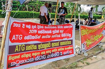ඒටීජී කම්කරුවන්ගේ ආරක්ෂාවට අවශේෂ කම්කරු පන්තිය බලමුලු ගැන්වීමට මුලුමනින්ම සතුරු මෙම සමිති නිලධරය, කම්කරුවන් කම්හල ඉදිරිපිට උපවාස ක්රියාමාර්ගයක හුදකලා කොට පවත්නා ධනේශ්වර පර්යාය තුල විසඳුම් ඇතැයි යන මිථ්යාව වගාදිගා කරමින් සිටී.