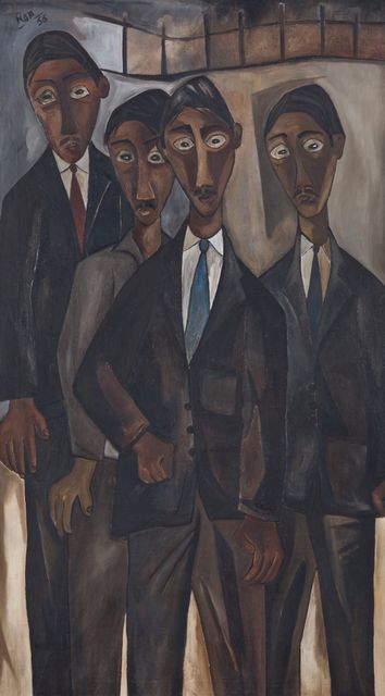 පැරීසියේ සිට ඉන්දියාවට ආපසු පැමිනීමෙන් පසුව නිර්මානය කරන ලද කුමාර්ගේ රැකියා විරහිත උපාධිධාරියෝ, පීඩාවෙන් දිරාගිය ඔවුන්ගේ දිගටි සිරුරු ඇඳුම් කට්ටලවලින් එල්ලා ගත්, අවතාරයන් බඳු තරුනයින් සිව් දෙනෙකුගේ තෙල් සායමකි. සිසුන්ගේ මුහුනු දිග සහ බදාම සහිත වන අතර, චිත්රයේ වැඩි කොටසක දී මෙන් අඳුරු දුඹුරු සහ අලු පැහැයෙන් යුතු ය. විශේෂ වන්නේ සිසුන්ගේ ඇස්ගෙඩි වන අතර, ඒවා ඔවුන්ගේ මුහුනු ඇතුලට ගිලී ගිය සුදු කලු අන්ඩාකාරයන් ලෙස අවෛෂයිකත්වයට පත්කොට තිබේ. රැකියා විරහිත උපාධිධාරියෝ, නිදහසින් පසු ඉන්දියාවේ සාමාන්ය මිනිසුන්ගේ ආර්ථික අරගල පිලිබඳ අවතාරයක් හොල්මන් කිරීමේ හැඟීම් දනවන භාවානුස්මරනයකි.