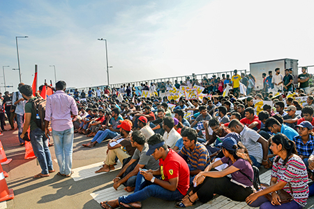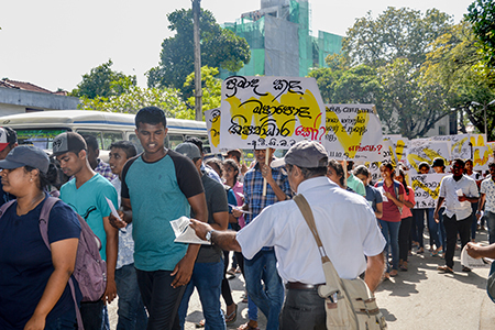 මහපොල සහ ශිෂ්යාධාර රුපියල් 10,000 දක්වා ඉහල දැමීම සහ මාස තුනකින් ප්රමාද කෙරී ඇති එම ගෙවීම් වහා පියවීම යන ප්රධාන ඉල්ලිම් යටතේ විශ්වවිද්යාල සිසුන් 1500කට ආසන්න පිරිසක් පසු ගිය බ්රහස්පතින්දා ජනාධිපති ලේකම් කාර්යාලය ඉදිරිපිට විරෝධතා දැක්වූහ. ලංකාවේ සෑම විශ්වවිද්යාලයක්ම පාහේ නියෝජනය කල සිසුන් කොලඹ පිහිටි සෞන්දර්ය කලා විශ්වවිද්යාලය වෙත පැමිනි අතර ඔවුහු පසුව පාගමනකින් ගාලුමුවදොර පිහිටි ජනාධිපති ලේකම් කාර්යාලය දක්වා පැමින ඒ ඉදිරිපිට විරෝධතා පුවරු ප්රදර්ශනය කරමින් සහ සටන්පාඨ හඬනගමින් උද්ඝෝනයේ යෙදුනාහ.