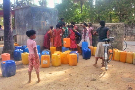 காரைநகரில் தண்ணீருக்காக காத்திருக்கும் பொதுமக்கள்